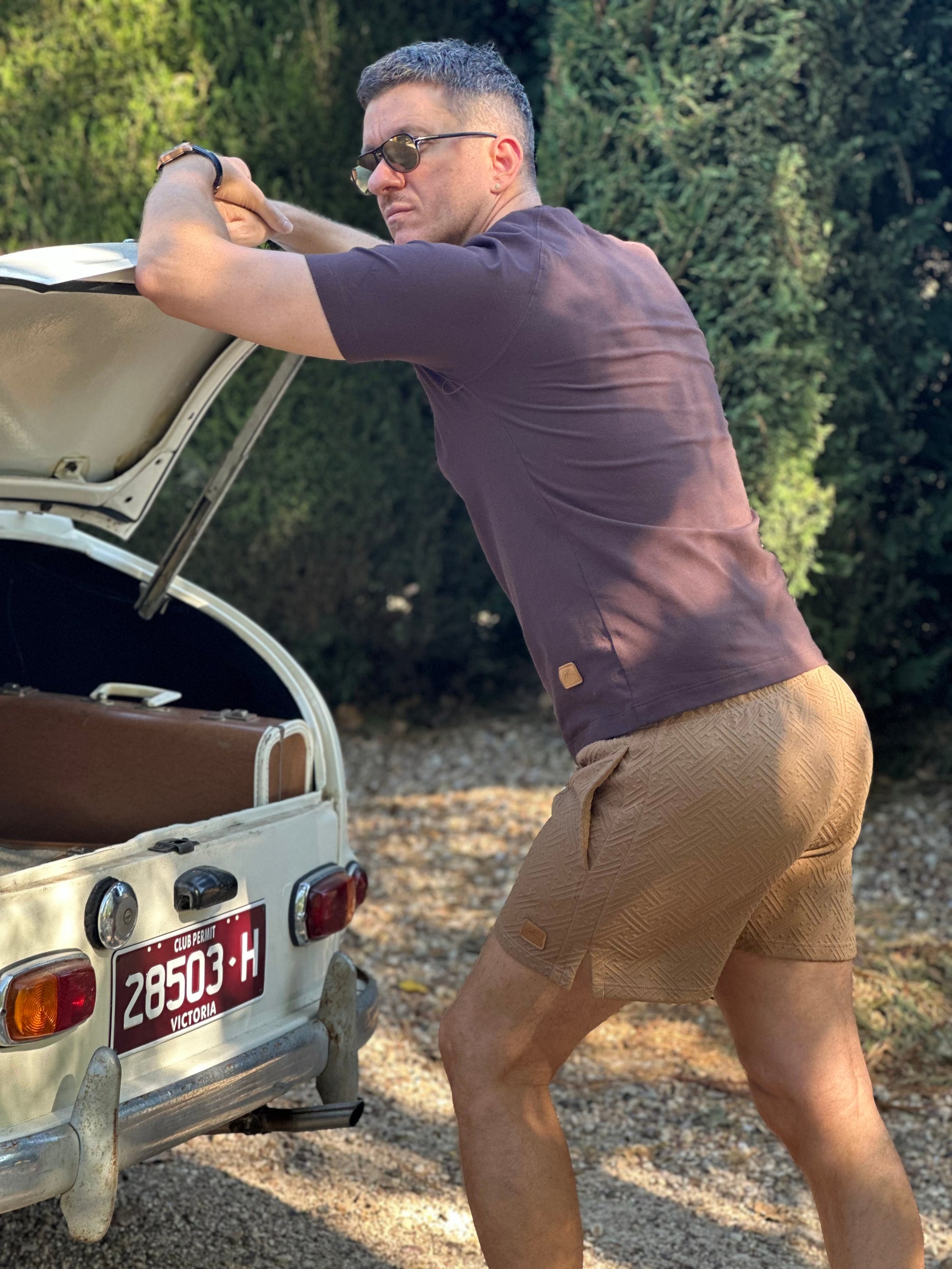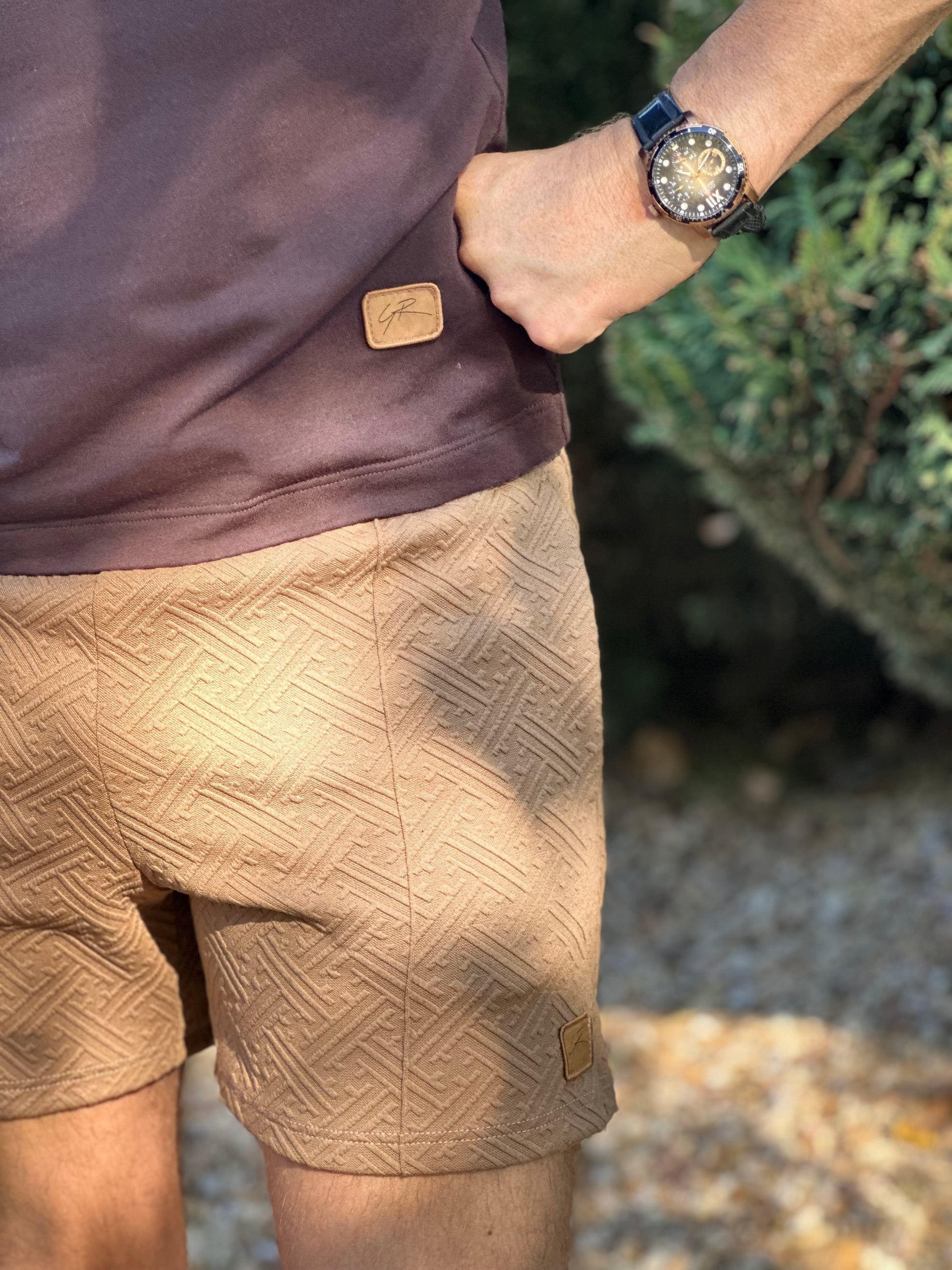 Expertly cut with a clean, tailored silhouette, the textured weave enhances structure and drape, giving the shorts a polished finish without compromising breathability. Inspired by Italian craftsmanship, every detail reflects thoughtful design—balancing modern sophistication with everyday practicality.